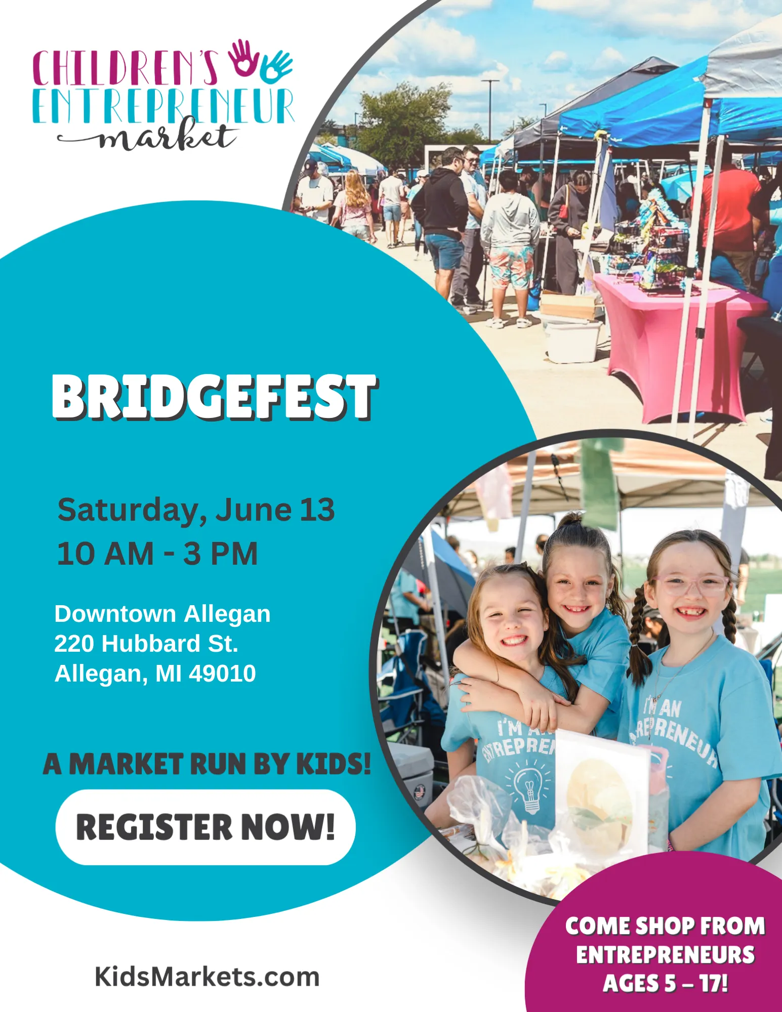 Is your child always creating, crafting, or dreaming up fun things to share with friends and family? Let them shine at Bridgefest by selling their creations at our Kids Market! This is a wonderful opportunity to support your child’s interests while watching them proudly run their own mini business, interact with customers, and build confidence in a fun, encouraging environment. Plus, the whole family can enjoy a full day of live music, great food, and plenty of family-friendly activities!