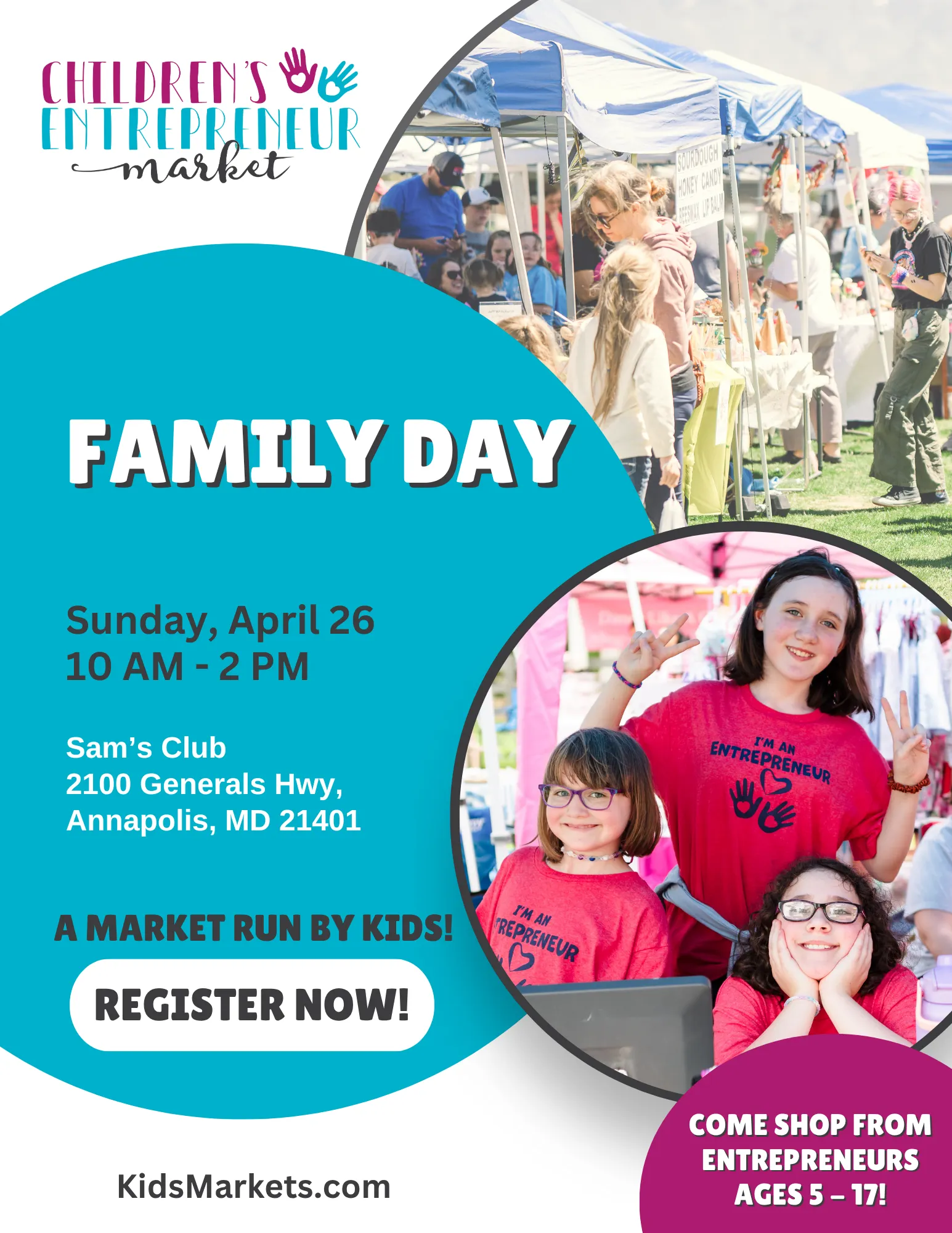 Family Day at Sam’s Club in Annapolis is the perfect opportunity for kids to bring their businesses to a high-traffic, high-energy location where creativity shines and confidence grows. Your child will have the chance to: