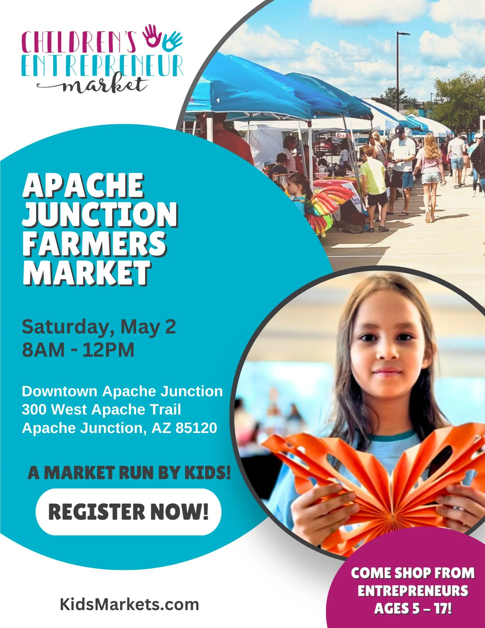 Be a kid entrepreneur at the Farmers Market! Showcase your creativity and sell your own products — from crafts to tasty treats. Every booth is run by kids! Don’t miss your chance to shine and make money. Register today to join the next generation of young business leaders!