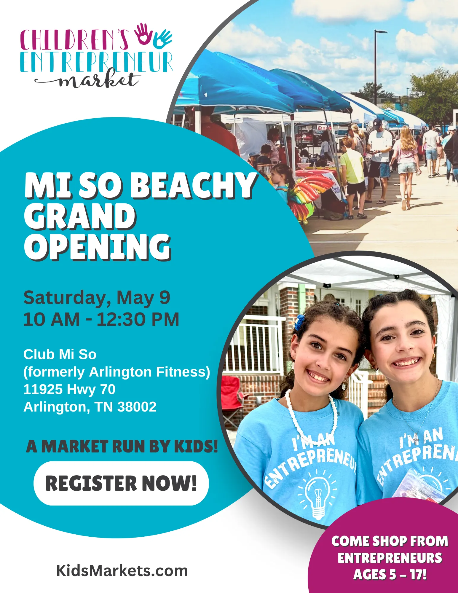 Let your kids shine at the Mi So Beachy Grand Opening at Club Mi So (formerly Arlington Fitness)! Young entrepreneurs can sell their creations, build confidence, and have fun in a lively market made just for kids—while parents enjoy the celebration. Sign up today!