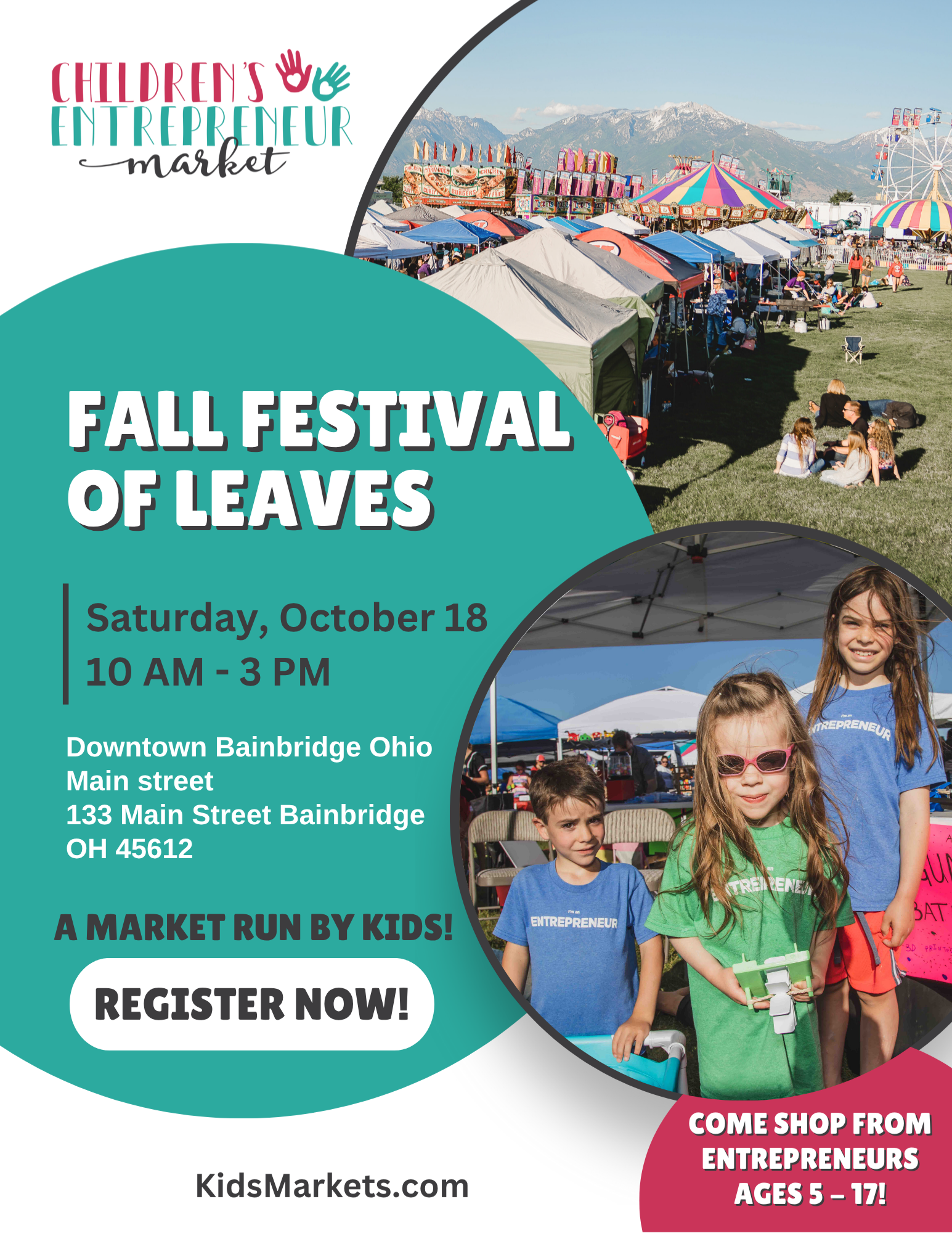 Join us at The Fall festival of leaves. This is an amazing festival and if you have never been, you don’t know what you are missing. Prepare to have a wonderful time meeting new people as you sell your merchandise.