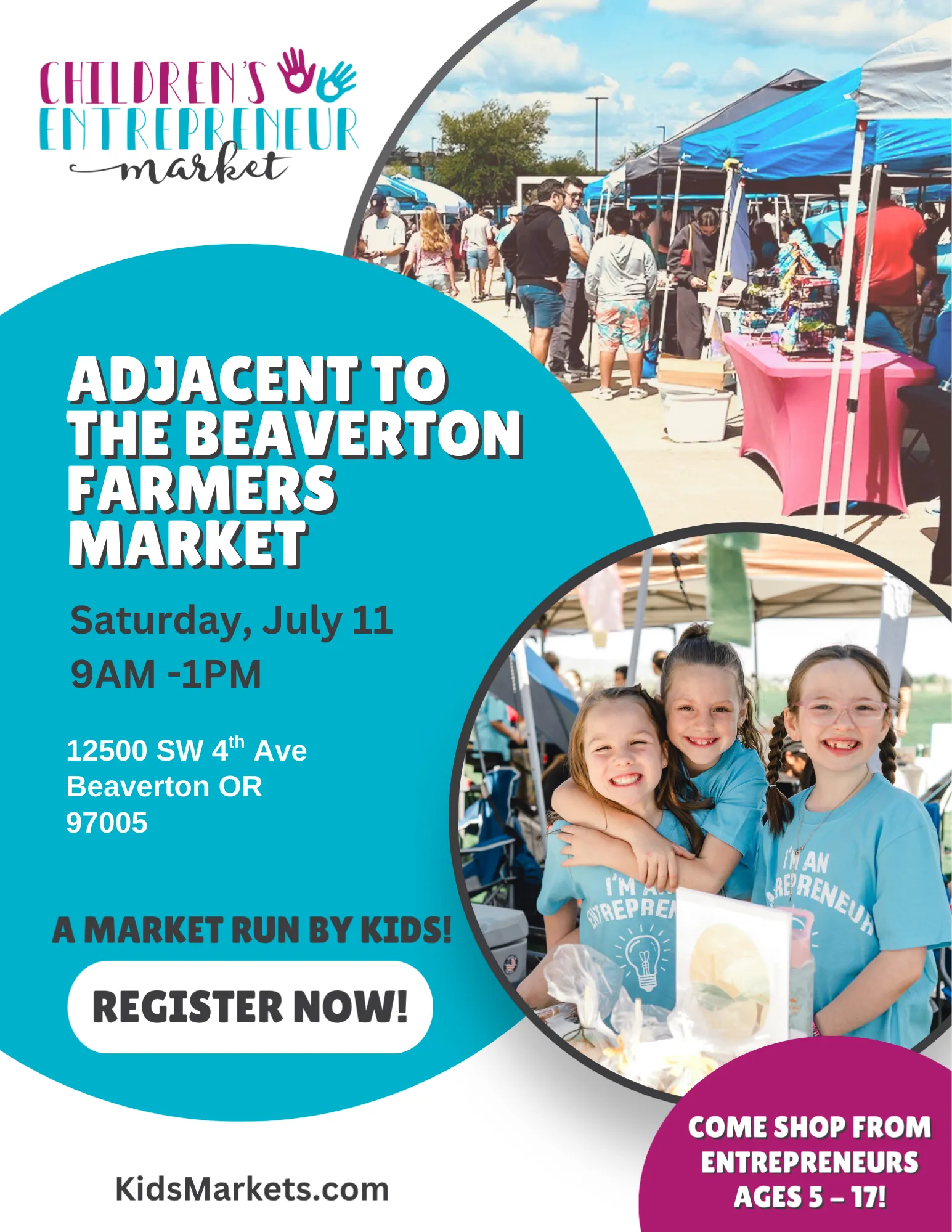 Calling all kids! If you have an idea and would like to try it in the marketplace, then look no further than the kids’ market next to the Beaverton Farmers Market! With thousands of patrons, you will get a unique experience to sell your products, earn money, and have real-life experiences of interacting with both kids and adults.