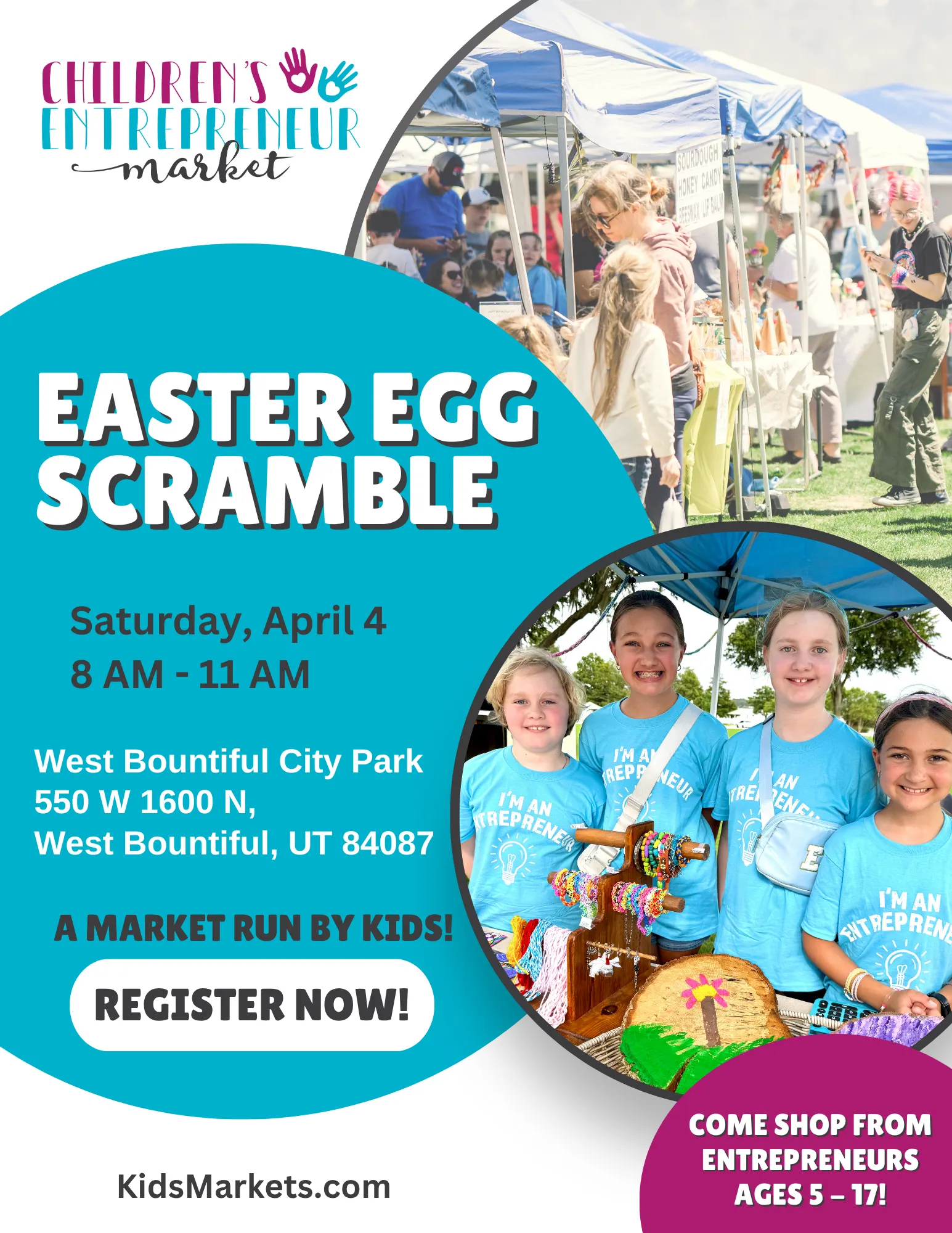 Hop on over! The Children’s Entrepreneur Market is popping up at the Easter Egg Scramble—where kids run their own booths, sell crafts and treats, and turn big ideas into egg-cellent creations. Family fun, smiles, and pint-sized entrepreneurs included!