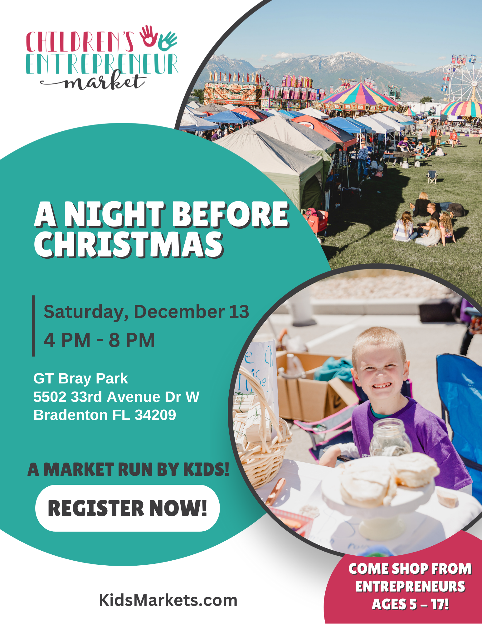 We have one of the biggest holiday events around with A Night Before Christmas, and there will be LOTS of people looking for unique, kid-made Christmas gifts! This is your time to shine and earn some holiday spending money too. Spots are limited, sign up today!
