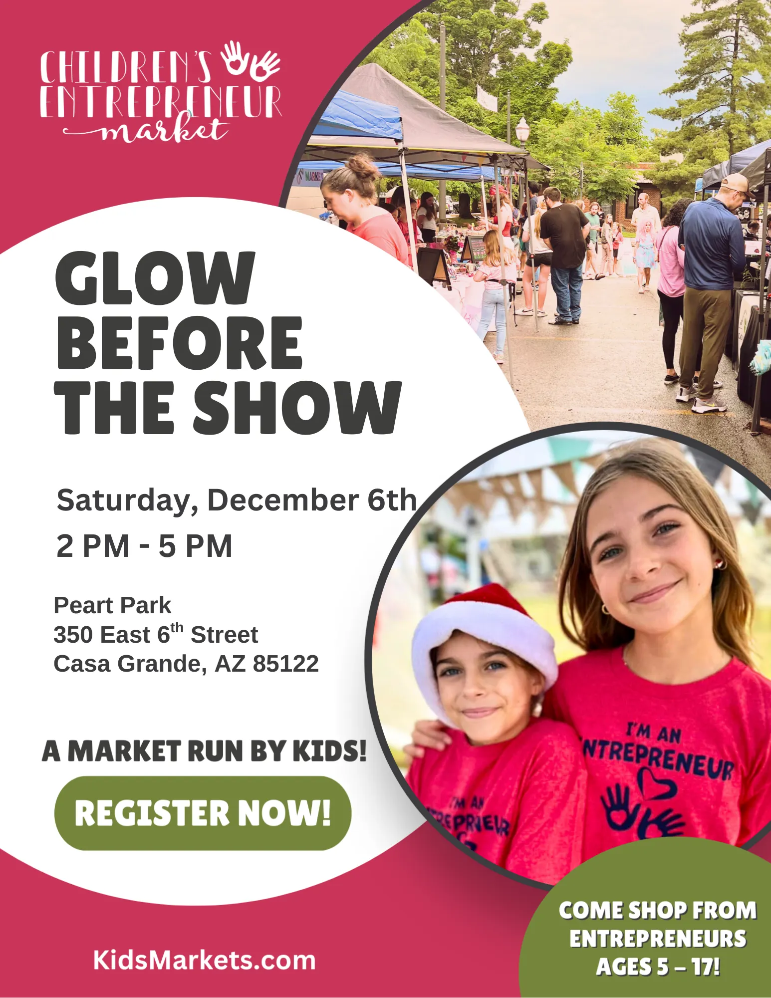 Casa Grande’s Glow Before the Show is an excellent venue for young entrepreneurs to sell their products, just in time for the holidays. Event attendees will be able to watch the electric light parade, participate in holiday festivities, and fill their loved ones’ wish lists from our young vendors.