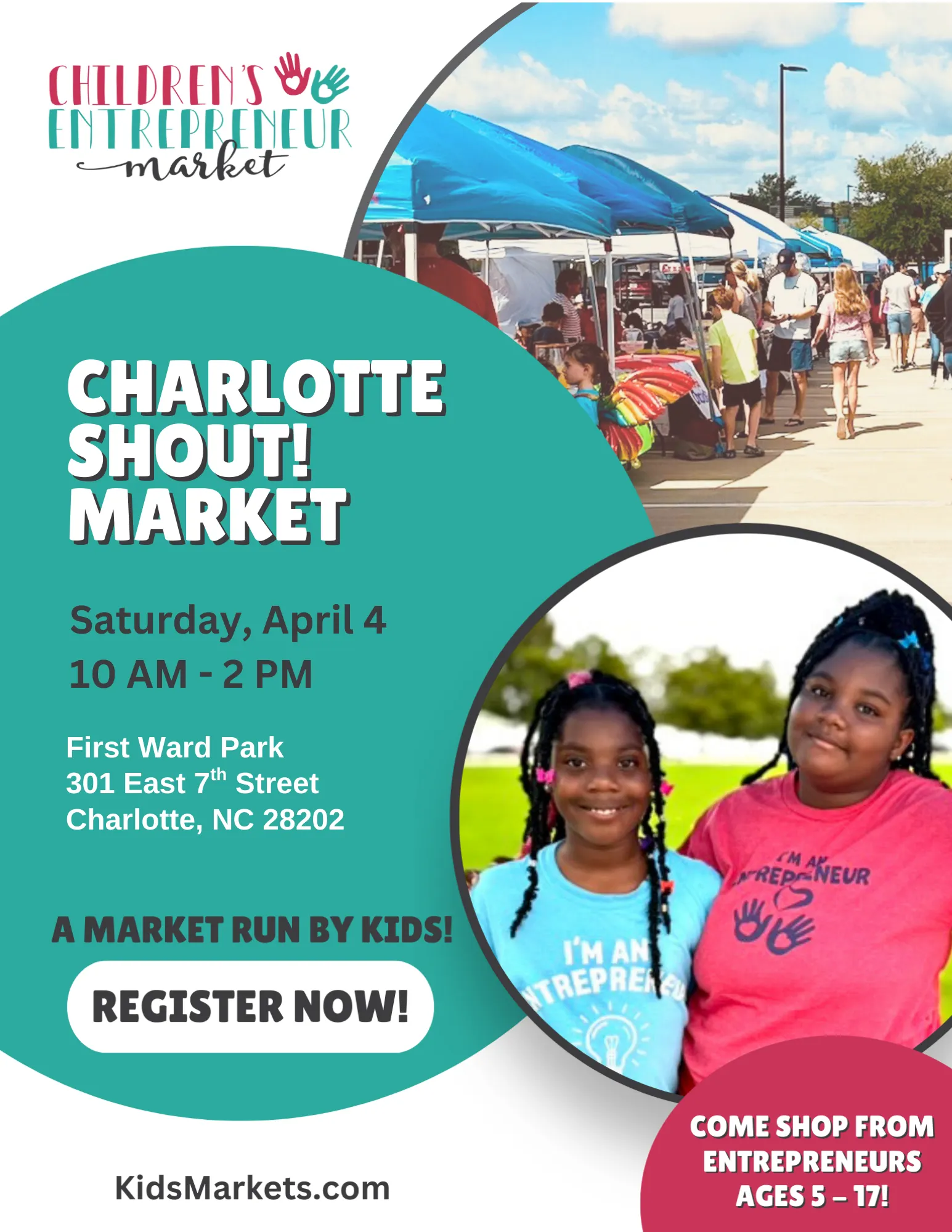 Charlotte SHOUT is an annual celebration of the city’s art, culture, and community. This event is huge and brings in thousands of patrons! The market will be at the beautiful First Ward Park in Uptown Charlotte. Kids will gain real-world, hands-on experience, learning money management, customer service, and problem-solving skills, all while discovering the excitement of running their own business in a fun and supportive environment.
