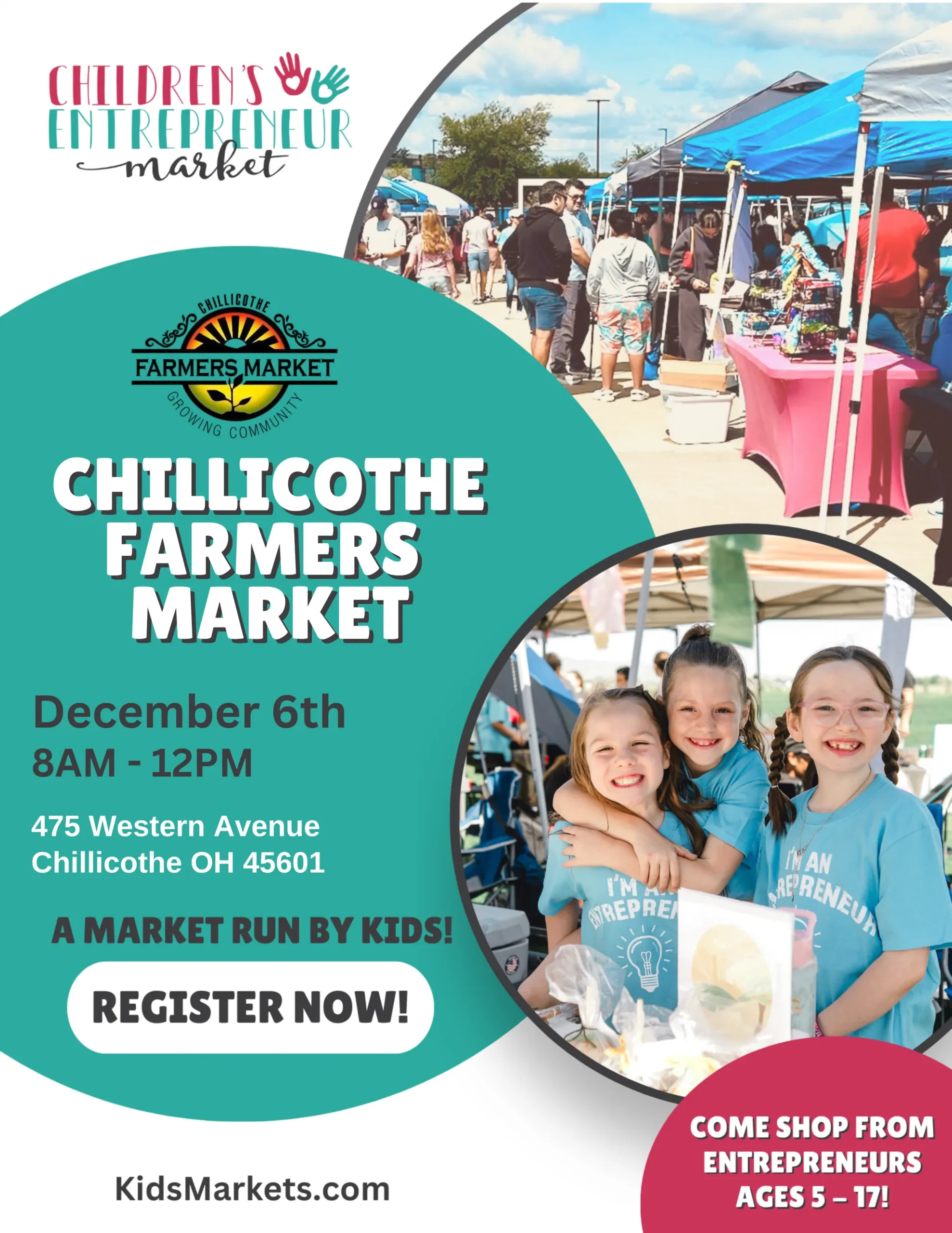 Kids, you don’t want to miss this market! Chillicothe Farmers Market runs year-round and is an outstanding Farmers’ Market. They have excellent vendors and a large number of loyal customers. You are sure to have an amazing experience here. Sign up to be a vendor today!
