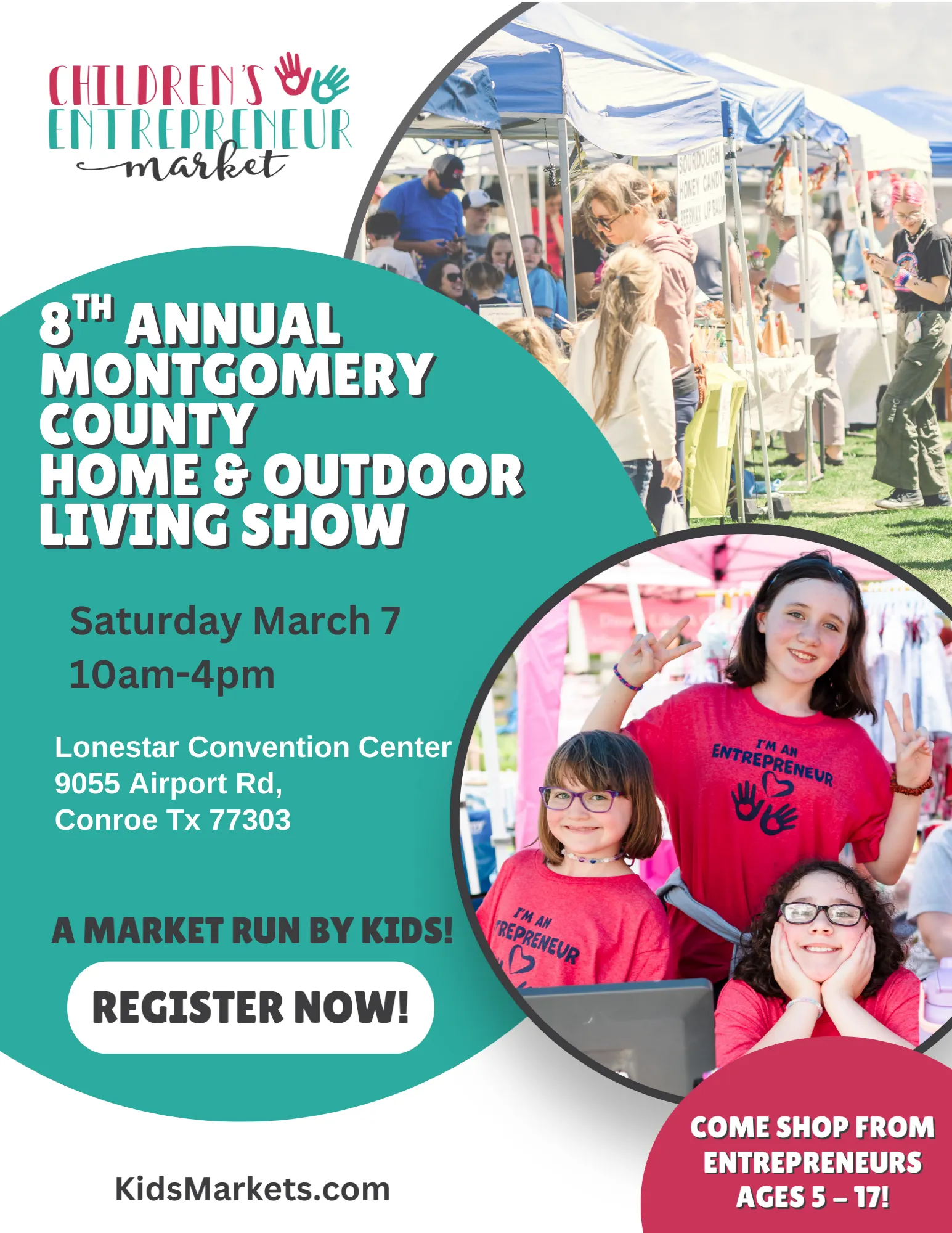 Young entrepreneurs shine at the Children’s Entrepreneur Market! Kids sell their own products, learn real business skills, and keep the profits. Don’t miss this successful, well-established event at the 8th Annual Montgomery County Home & Outdoor Living Show!
