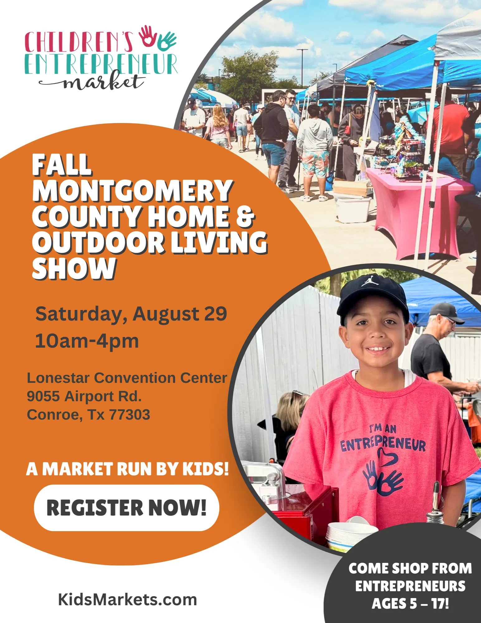 Kids can showcase their creativity and run their own business at the Children’s Entrepreneur Market—sell their products, learn real business skills, and keep their profits! This event is well established and a real money maker! Join us at the Fall Montgomery County Home & Outdoor Living Show for a great day!