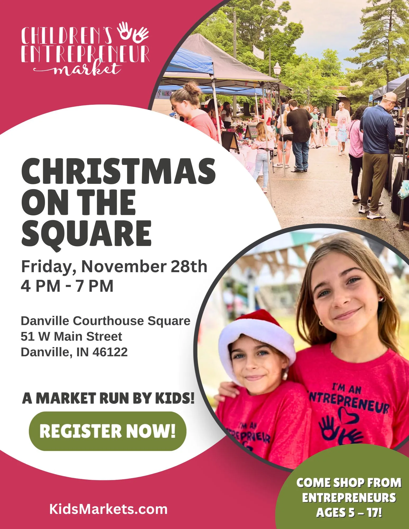 Join us in Danville at the historic downtown square for one of the community’s largest gatherings! Visit with Santa, enjoy the tree lighting, and have your kids sell products at the Children’s Entrepreneur Market!