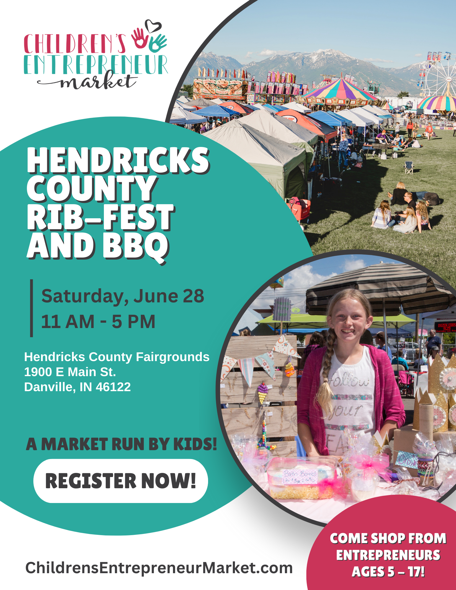 Join us for the 20th Annual Hendricks County Rib-Fest! Shop with some amazing child entrepreneurs while you enjoy ribs, live entertainment, and more festival fun. 10,000 patrons are expected.