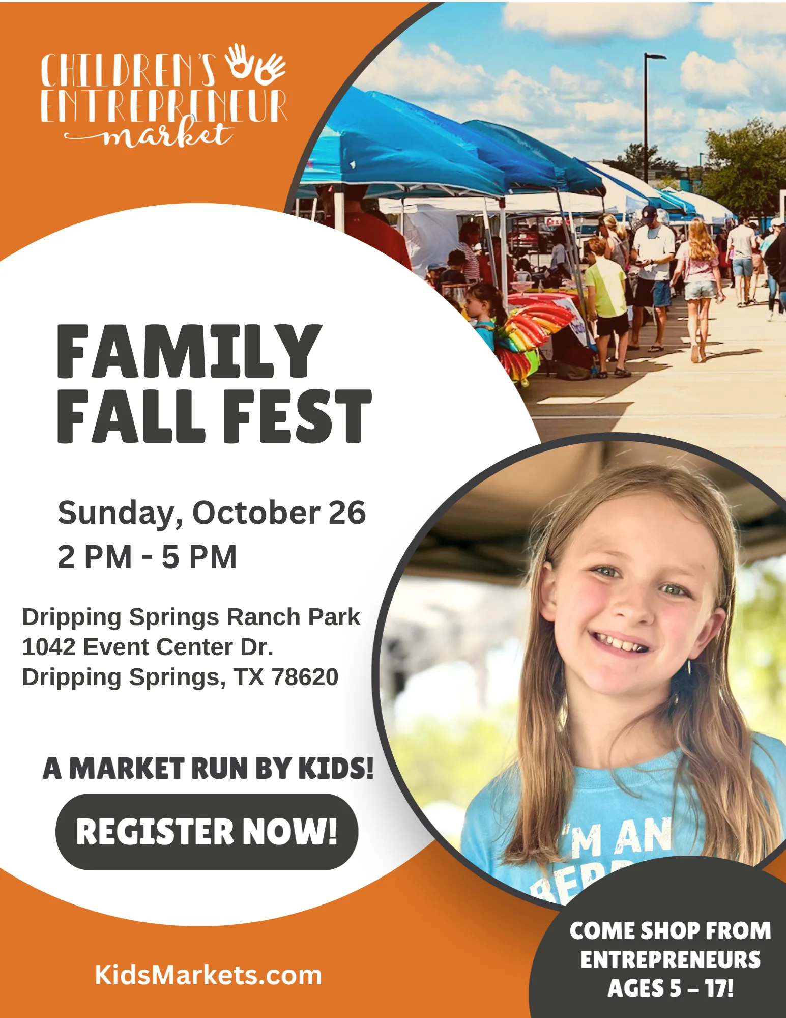 Join us for our Family Fall Fest at Dripping Springs Ranch Park! This event will feature a unique hop-on-hop-off hayride that takes attendees to activity stations around the 130-acre park. We are excited to have our kids market here, as it’s going to be an amazing time! Be sure to invite all your family and friends!