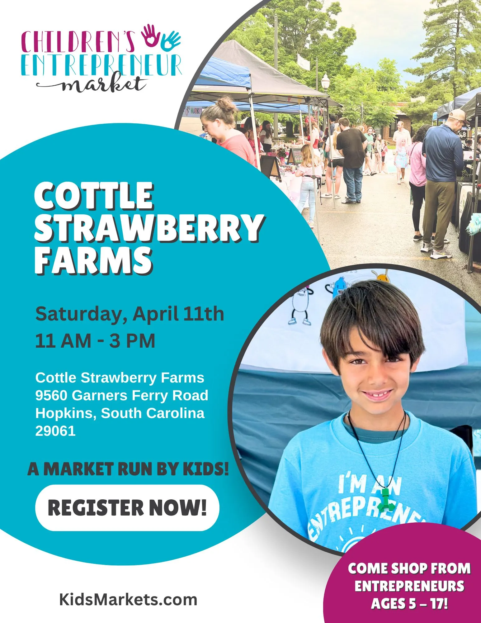 Celebrate your child’s hard work at the Children’s Entrepreneur Market! This is their moment to shine- selling their creations, building confidence, and gaining real-world experience, all at the fun-filled Cottle Strawberry Farms.