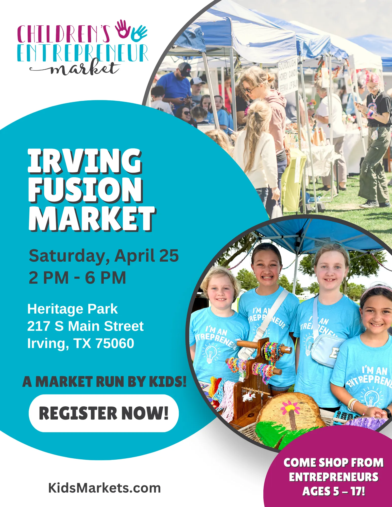 Calling all kid entrepreneurs! Set up your own booth at the Irving’s Fusion – a fantastic cultural event with hundreds of visitors! Sell your handmade goods, tasty treats, and creative services, and be part of the fun! Sign up today for this popular market – spaces are limited!