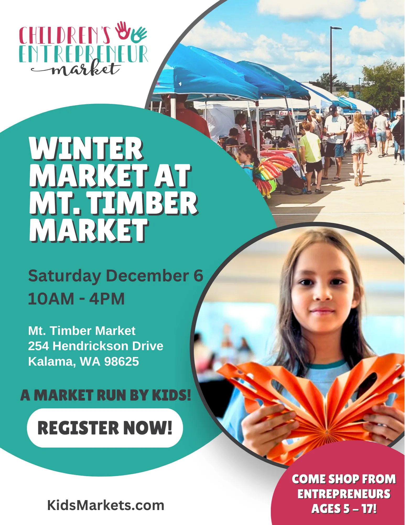 This Children’s Entrepreneur Market is excited to partner with Mt. Timber Market for this special holiday event where young entrepreneurs can showcase their products alongside local vendors. Its a fantastic opportunity to build confidence, learn business skills and have fun.