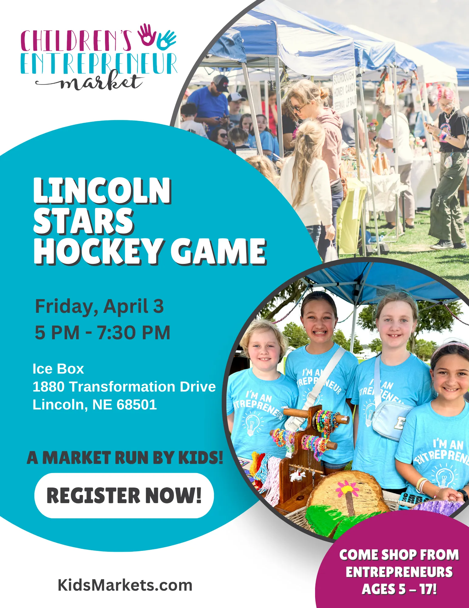 Kids can showcase their creativity and run their own business at the Children’s Entrepreneur Market at the Ice Box—sell their products, learn real business skills, and keep their profits! This event is well established and a real money maker! Join the Lincoln Stars Hockey game and have a sell-out night!