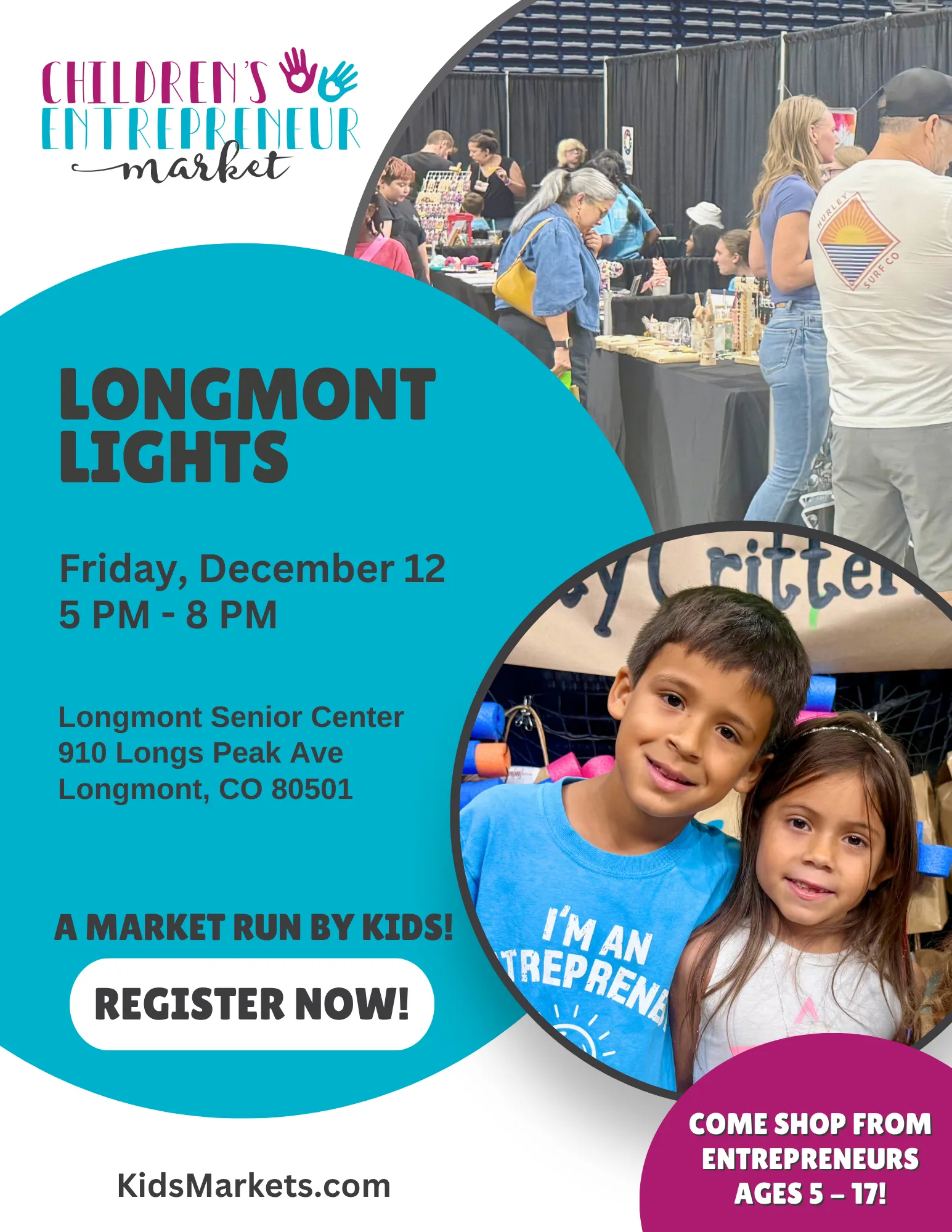 Join our incredible kids market as shoppers stroll around Roosevelt Park lit up with thousands of holiday lights! This festive evening will be filled with hot cocoa carts and fire pits, visits with Santa and projects in his workshop, all made complete with the best holiday music of the season! The night ends with a sparkle…Don’t miss the laser show at 7:45pm!