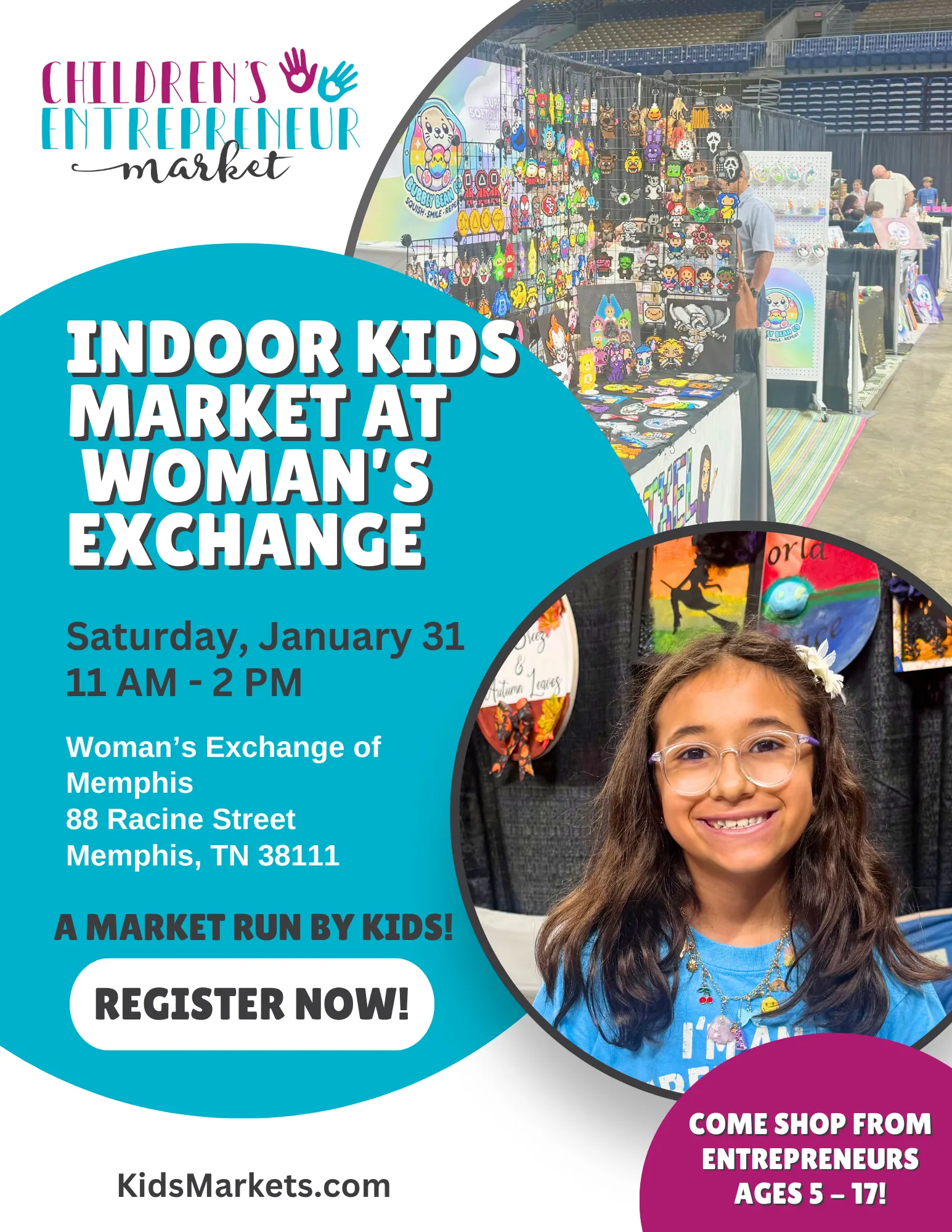 Kids can showcase their creativity and run their own business at the Children’s Entrepreneur Market—sell their products, learn real business skills, and keep their profits! Join us indoors at the Woman’s Exchange of Memphis!