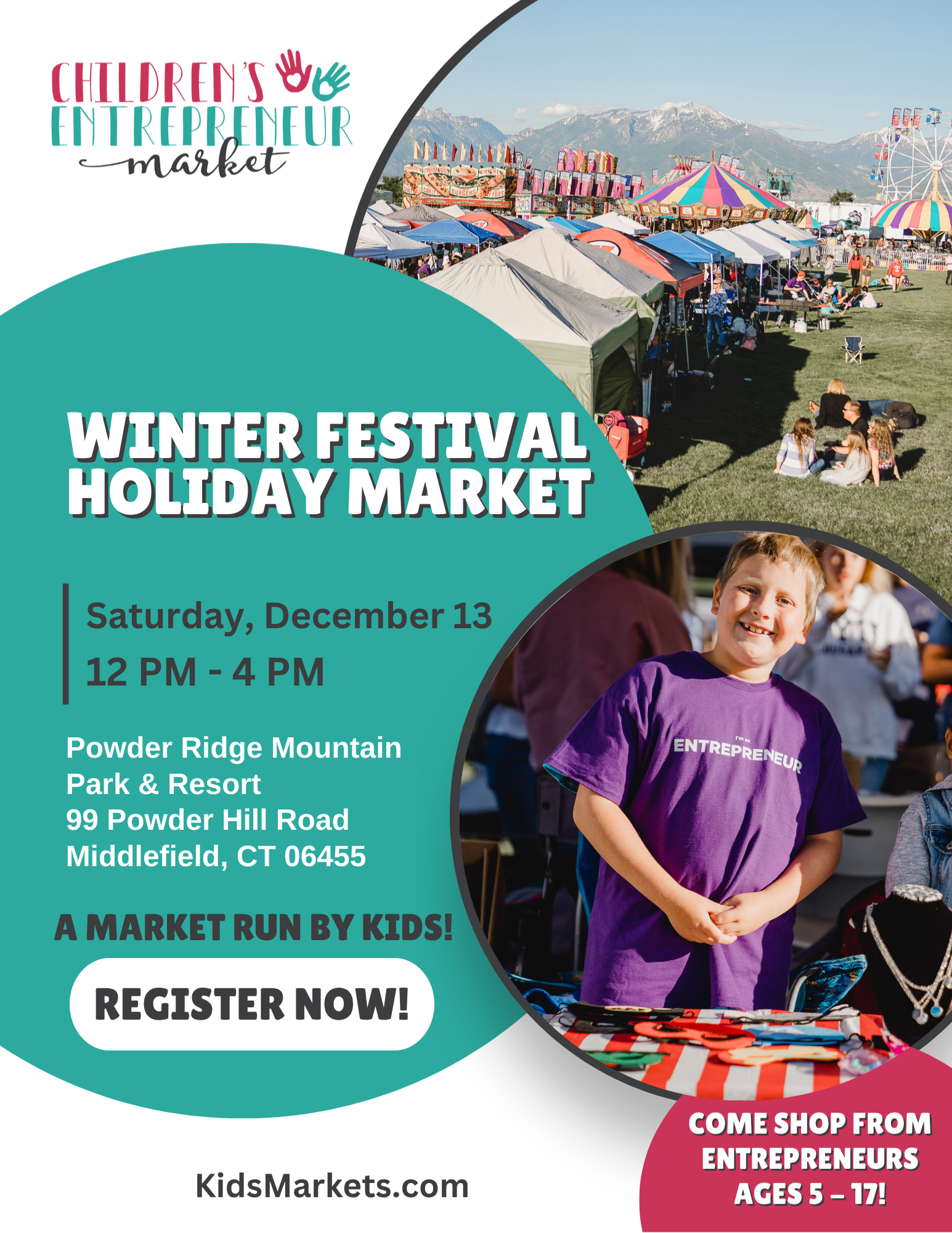 Come check out the Children’s Entrepreneur Market at Powder Ridge for Winterfest! From snow tubing, music, shopping, to visiting Santa, there’s something here for the whole family! Admission to the market, located in the lodge, is free!