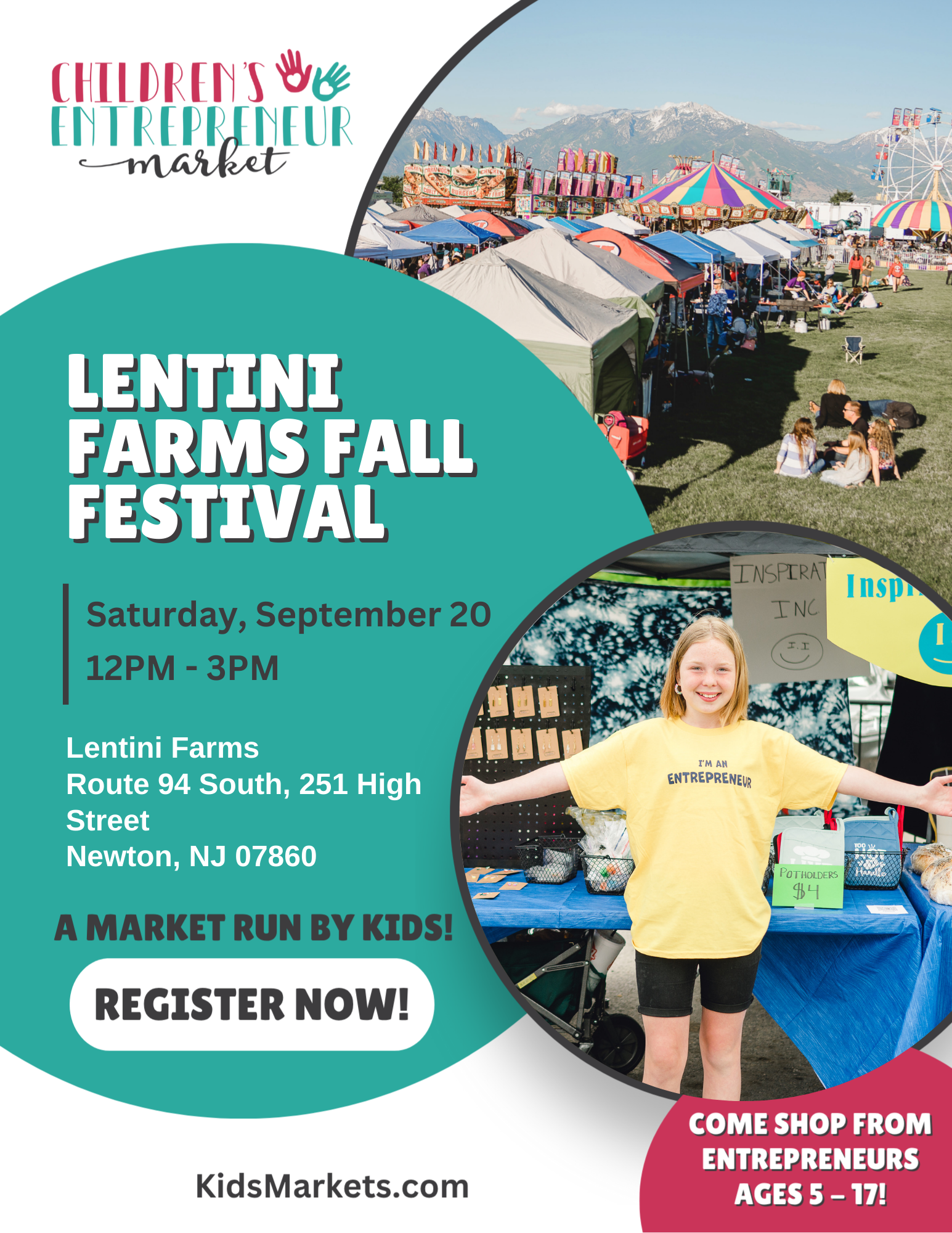 Join our Children’s Entrepreneur Market at the Lentini Farms Fall Festival! Support young entrepreneurs, while enjoying corn mazes, hayrides & live music for a fun family day!
