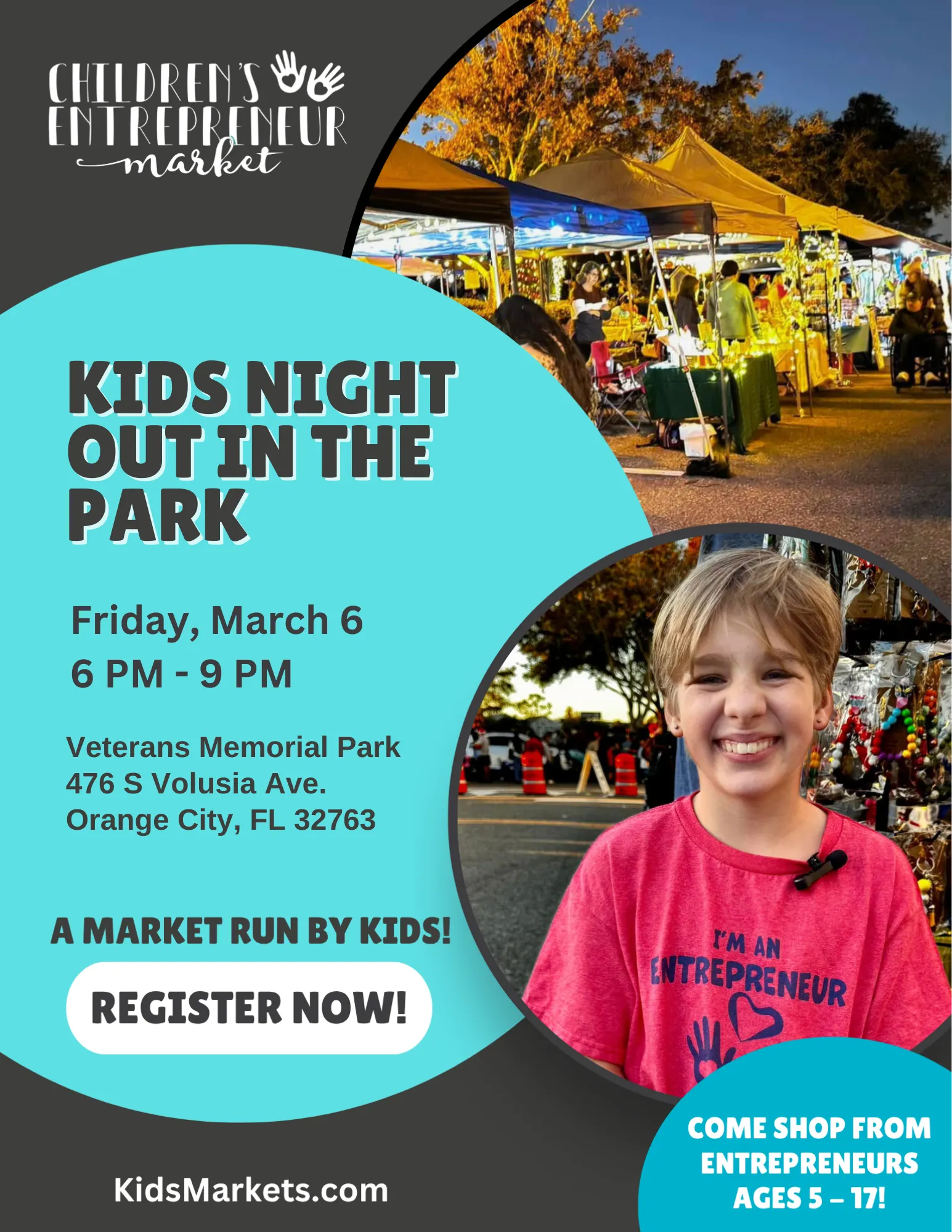 Young Entrepreneurs, do you have something cool to sell? Join the Kids Market at the Kids Night Out! 🎪 Share your crafts, treats, or creations and be a part of the fun! 🎨🛍️ Sign up today—spaces are limited! 🎉