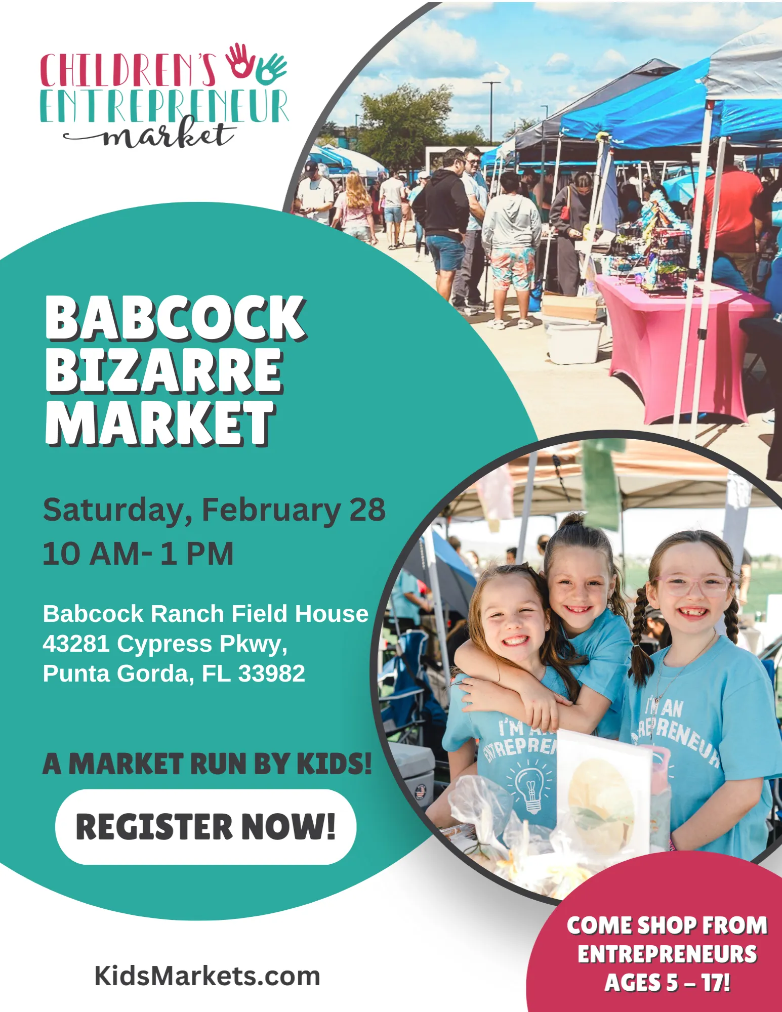 Join us at Babcock Ranch to kick off the Babcock Bizarre! This is a great opportunity to get exposure for your business! We will be alongside several food trucks and there will be plenty of activities for all family members! 500 patrons expected at this event.