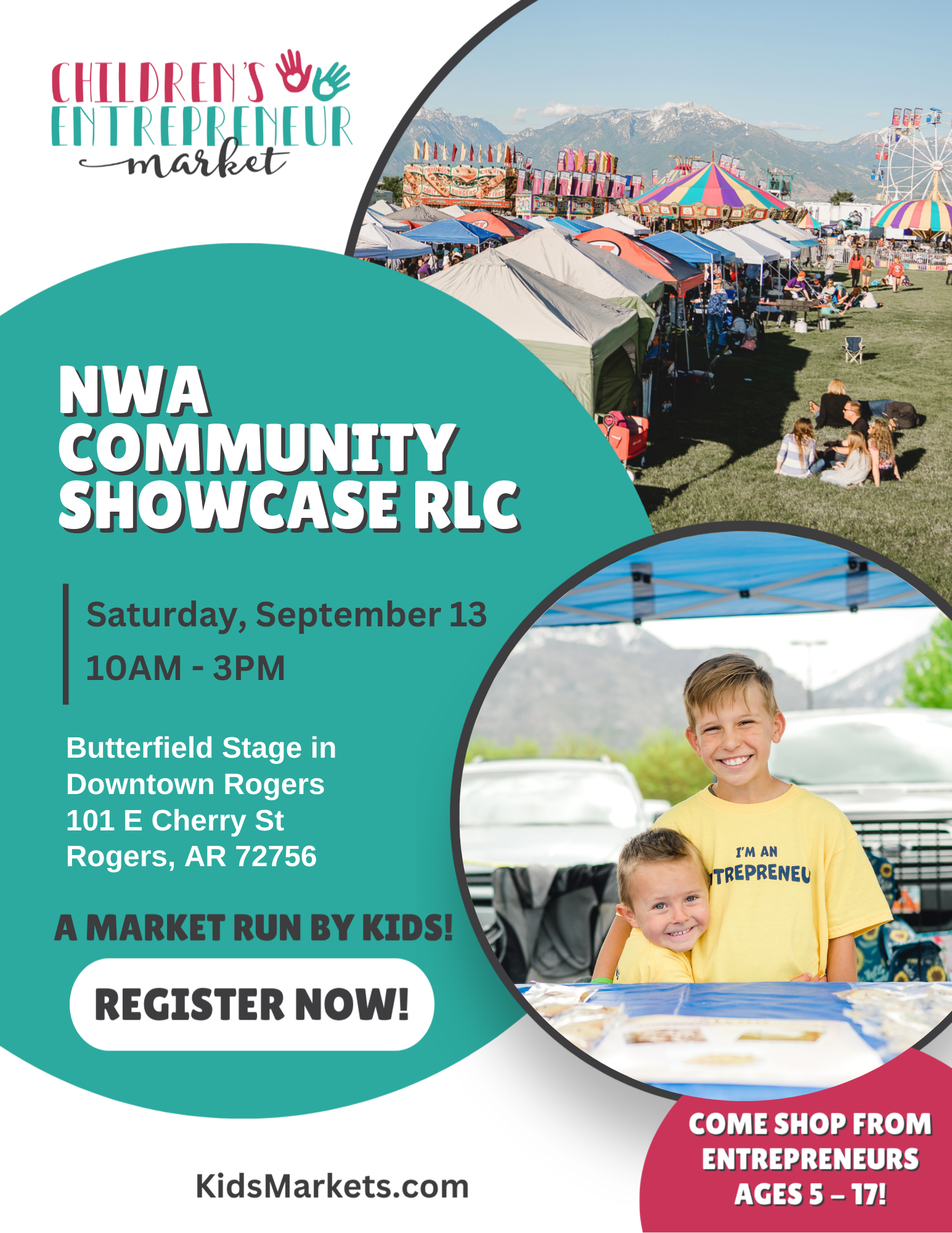 The NWA Community Showcase is a free Downtown Rogers event presented by PepsiCo and the Walton Family Foundation! Hosted by RLC, this vibrant celebration brings together people of all ages with live entertainment at Butterfield Stage, interactive exhibits, and multicultural experiences. This year, the Children’s Entrepreneur Market joins the fun, giving kidpreneurs the chance to showcase and sell their handmade goods, tasty treats, and creative services to the community. Sign up today to be part of what makes Northwest Arkansas so special- you won’t want to miss this one!