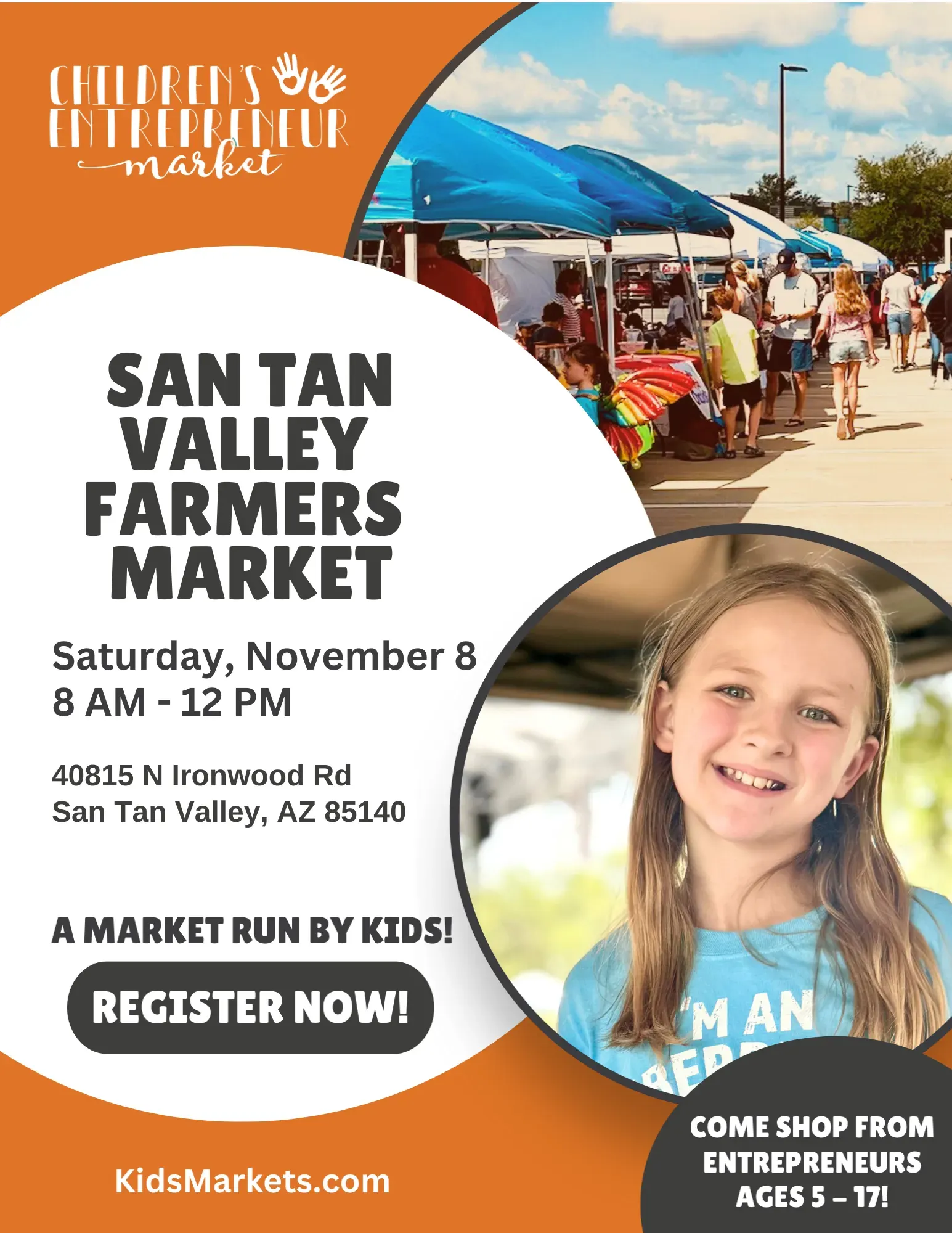 Join the Children’s Entrepreneur Market at San Tan Valley Farmers Market! Kids run their own booths, sell their creations, and learn real business skills. A fun, hands-on way to earn money and shine as an entrepreneur—sign up today!