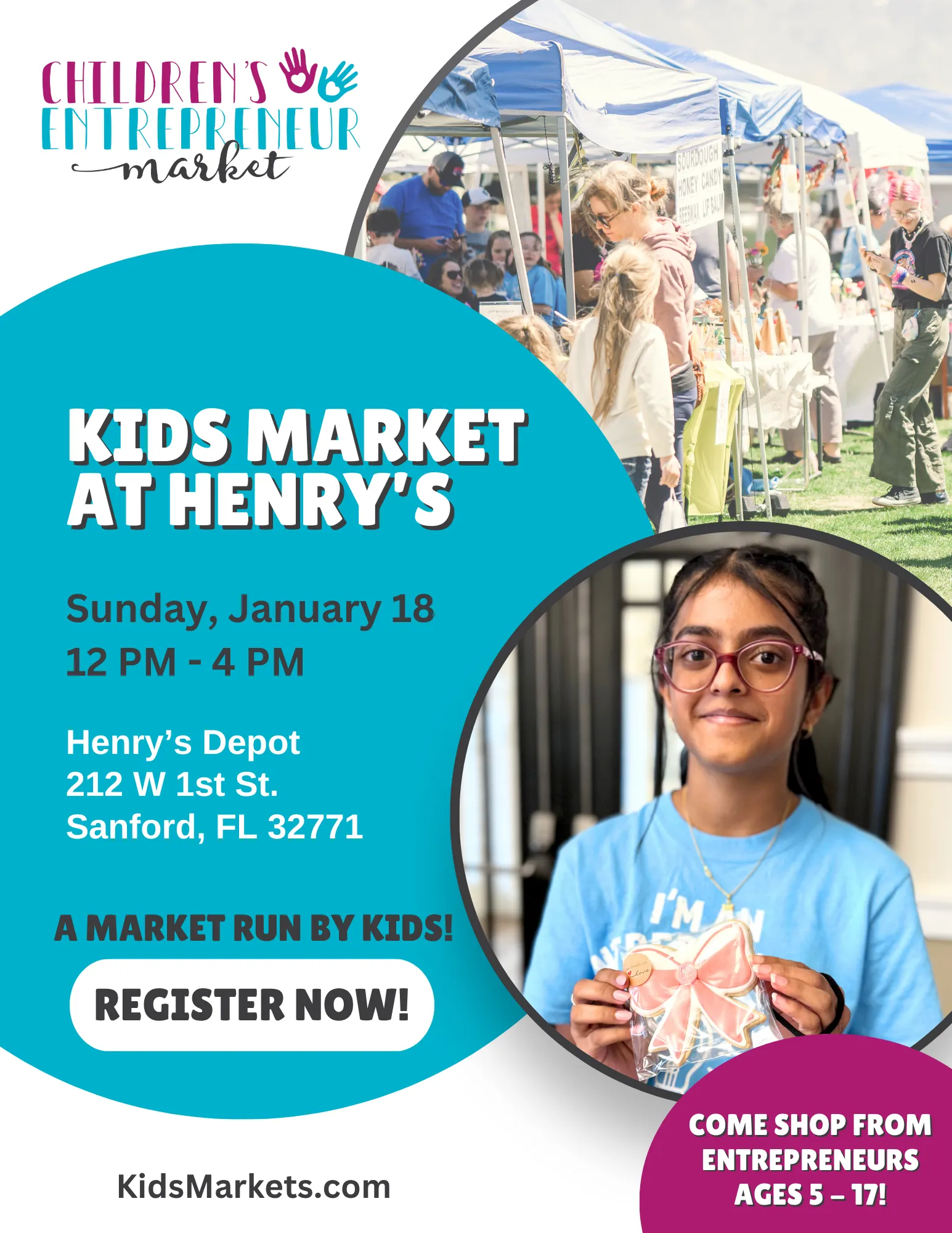 Join Us at Henry’s Depot in Historic Downtown Sanford! Don’t miss this special opportunity to showcase your products during a packed 3-day weekend of events! Henry’s Depot is a local favorite, drawing regulars and visitors alike for great food, drinks, and fun. Our Kids Market will be front and center on Sunday, giving young entrepreneurs a prime spot to sell to the lunchtime crowd and weekend visitors. Come be part of the excitement — spaces are limited, so secure yours today!