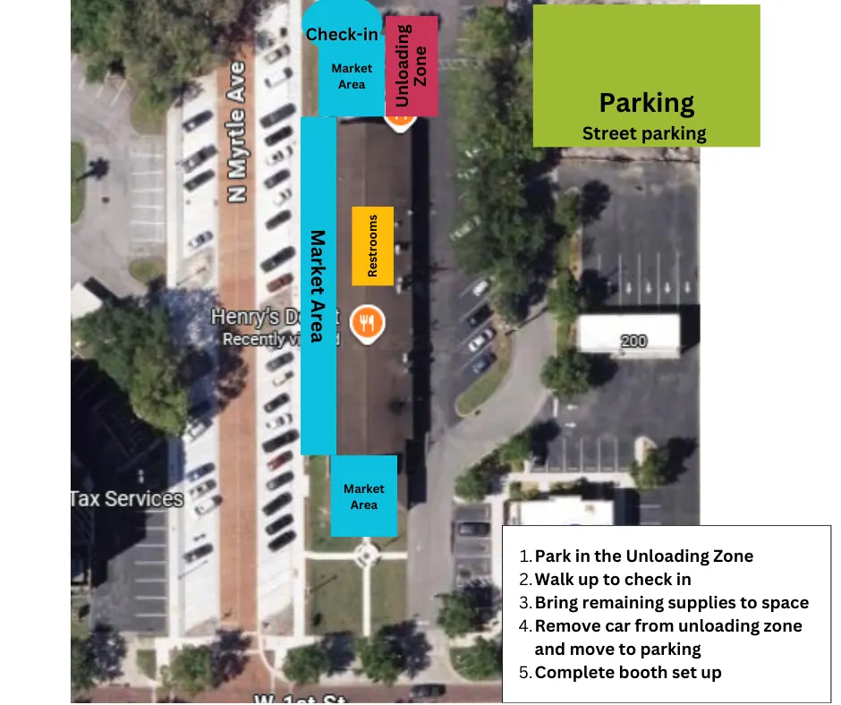 Restrictions for this market: No food or drink sales allowed. Booth spaces are 7ft x 5ft.