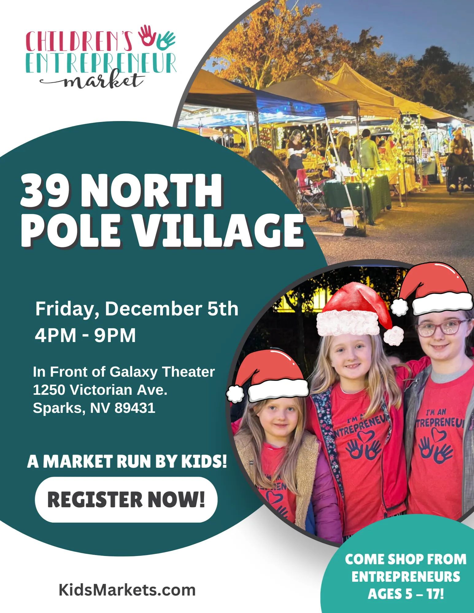 We are so excited to be partnering with the 39 North Pole Village for this market! This is a huge community event with between 10,000-30,000 visitors. This special holiday night market is the perfect chance for kids to show off their creativity, sell their handmade goods, and celebrate the season in festive style.