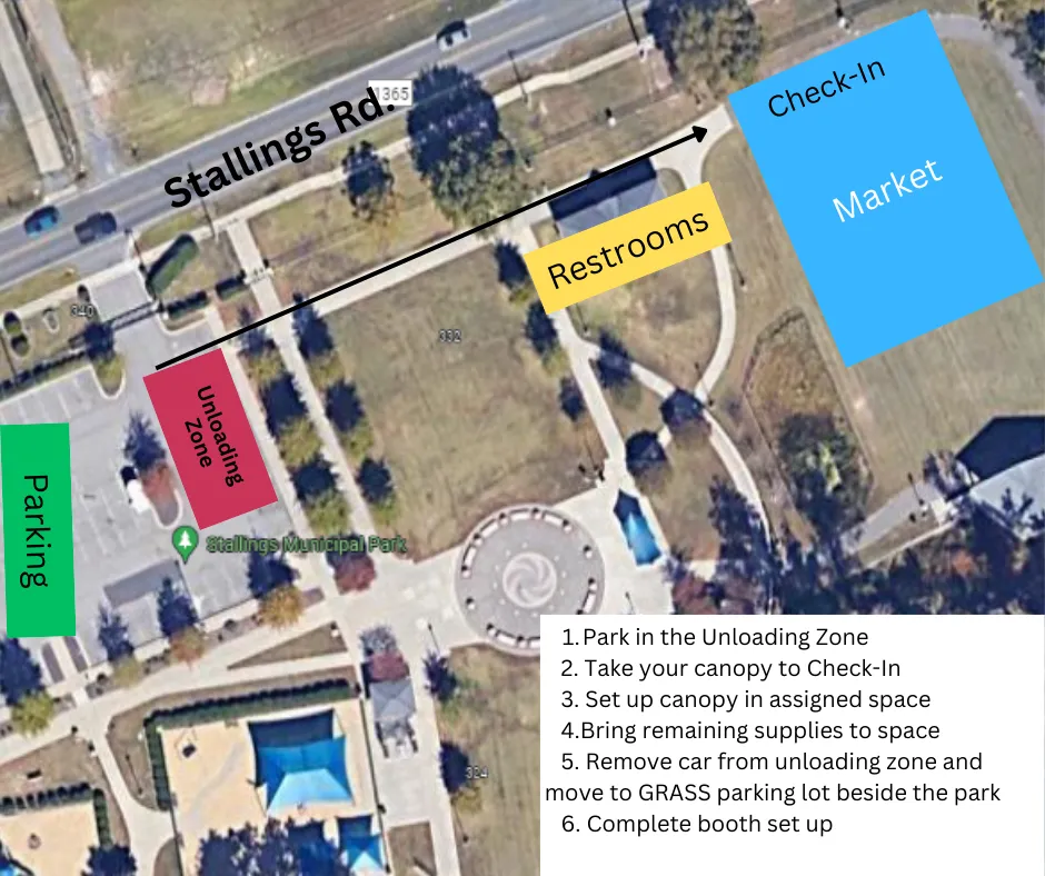 - Only one car per family is allowed to park in the GRASS parking lot adjacent to Stallings Park. Additional cars will need to park in area parking.