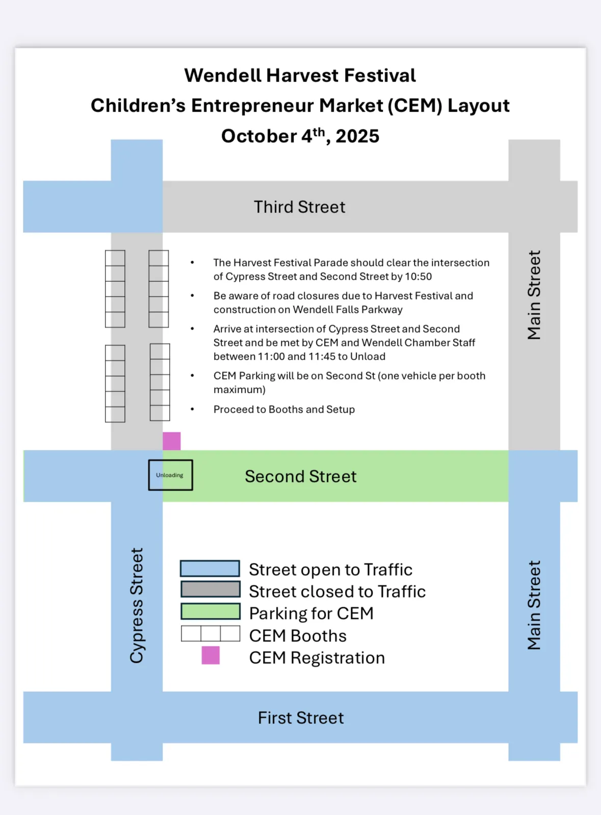 Our Children’s Entrepreneur Market is headed to the 97th Annual Wendell Harvest Festival! Bring your friends and family and enjoy a day filled with a hometown parade, food vendors, kid village, live music and more. We are expecting 11,000 patrons at this event!