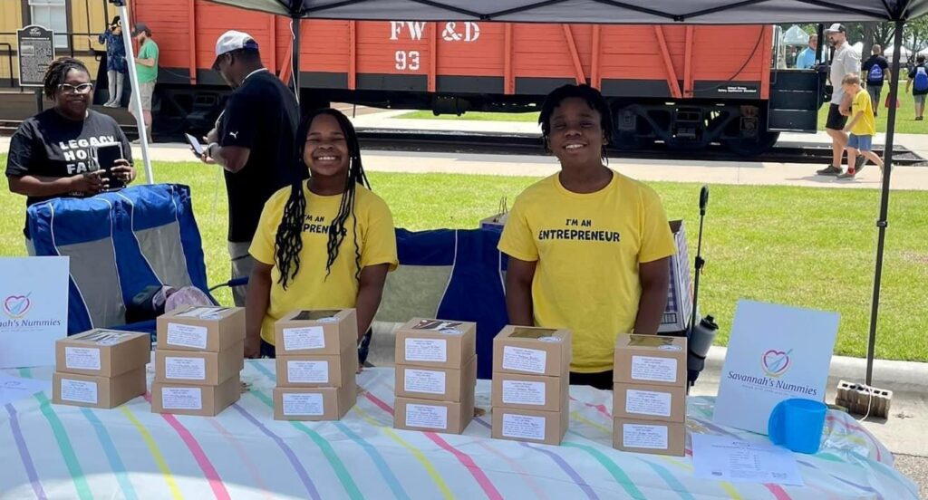 Nine-year-old Auri Savannah is the owner of Savannah’s Nummies! Auri and her eleven-year-old brother Kaiden have come to every single one of our Texas markets except for one this year, and their baked goods are consistently a huge hit.